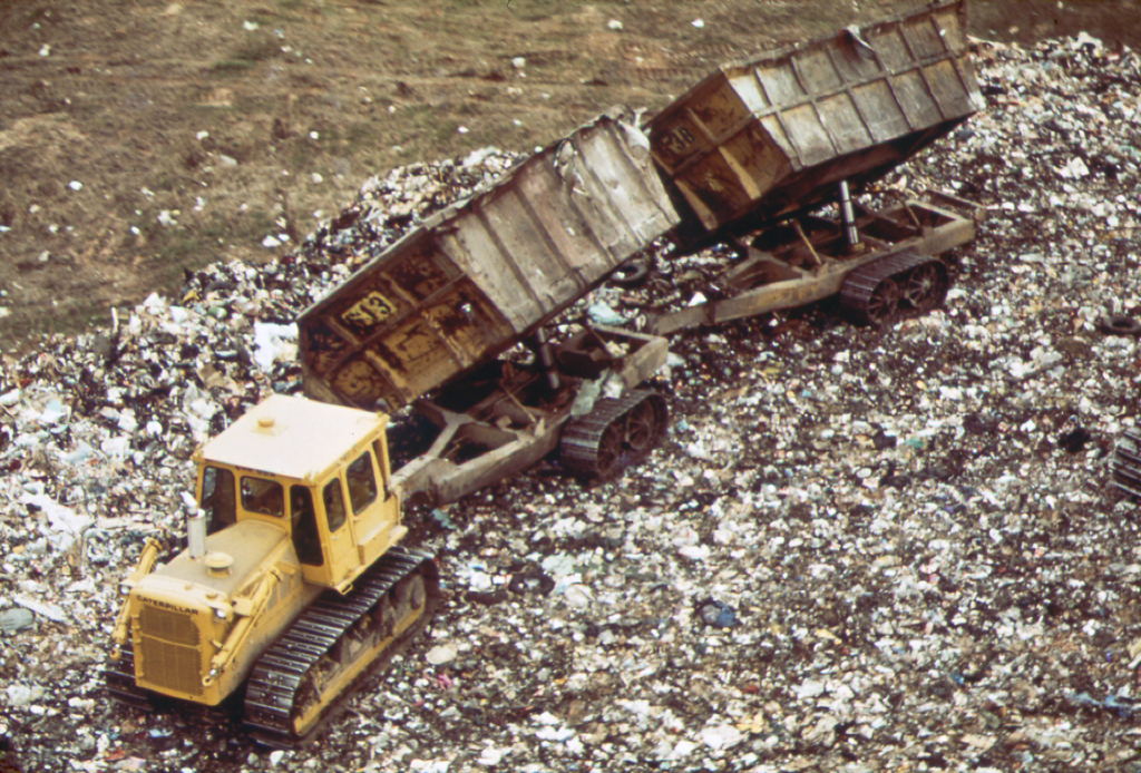 By the mid-1970s, Fresh Kills had already claimed the title of world’s largest garbage dump for twenty years (“visible from space!” people said), and it would keep growing for another quarter century until its closure, finally, in 2001. During all that time, to the dismay of native Staten Islanders, it was the sole defining feature of the borough that registered in the consciousness of most other New Yorkers. Nevertheless, what I saw that day was magnificent: a hellscape, to be sure, but on a scale that boggled the senses. Scores of tractors and bulldozers were in constant motion in the distance, pushing enormous quantities of refuse into compact mounds like an army of ants tidying up for the queen. Sanitation trucks lined up in front of us for a quarter mile or more, each awaiting the chance to drop its load. Above and upon the huge heaps of waste around us, so densely packed in some spots that you couldn’t see the garbage, were thousands of seagulls gorging themselves on urban excreta. The screeching of the gulls and the droning roar of machinery melded into a perfect soundtrack for the apocalyptic scene.