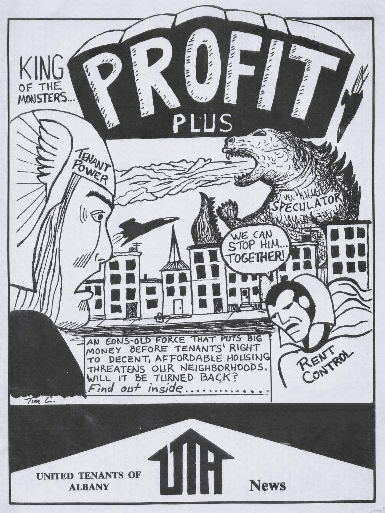 By now, though, I was beginning to feel the pressure of institutional requirements and expectations. In an attempt to score at least a couple of easy credits that semester, I had seized upon one of the “community service” courses listed in the SUNY catalogue. The two-credit, pass/fail classes were essentially unpaid internships at non-profits in the Capital District. For reasons I don’t quite recall, but possibly because I had just moved off campus into a ramshackle apartment on State Street with two friends, I selected United Tenants of Albany – UTA – from the list.